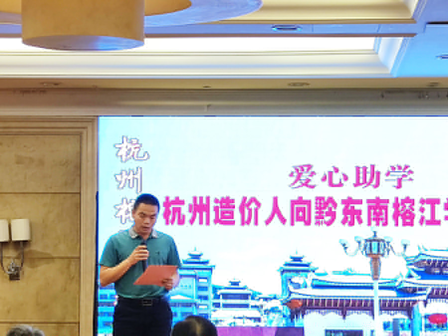 2、杭州市建設(shè)工程造價(jià)管理協(xié)會(huì)常務(wù)副會(huì)長蔡紅偉介紹自對口扶貧榕江縣以來,杭州市工程造價(jià)管理協(xié)會(huì)是如何開展對榕江縣愛心扶貧工作的。